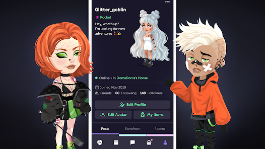 Choose who you want to meet for a chat and give life to your avatar in the virtual chat room. Share your mood, post comments, follow others and create your own social community. In the Highrise metaverse, you can connect and play with anyone!