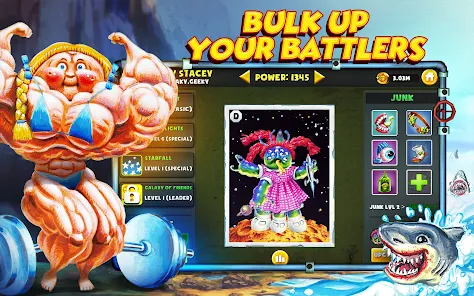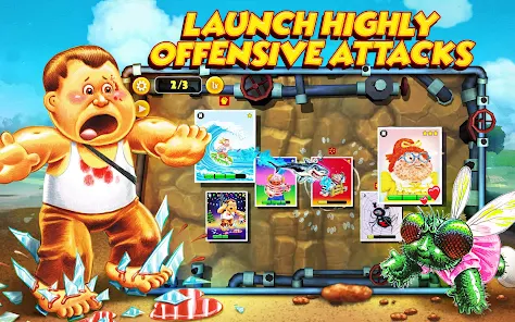 Adam Bomb, Tee Vee Stevie, Smelly Sally, Roy Bot, Mad Mike, Fryin' Brian, Ali Gator, Savage Stuart, Dead Ned..... the neverending list of your favorite GPK Card characters are ready to fight. Get as many of your beloved GPK Card Heroes on your roster and build your crew. Enter multiplayer PVP Battles and indulge in nonstop card strategy RPG while enjoying gutbusting strike animations. Unlock rare cards as you progress in the best RPG game on the store. Learn quirky skills, find bizarre gear, and level up your outrageous team of Garbage Pail Kids champions.