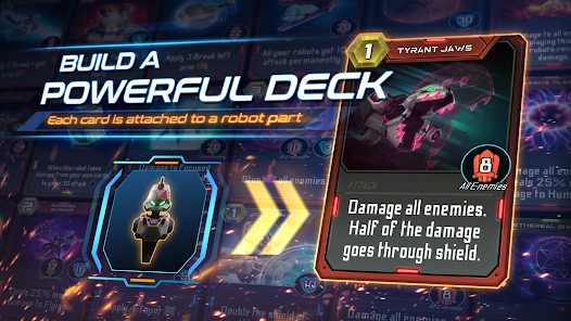 Apart from creating your own team of robots, this TCG game has 3 types of cards to work with: Attack, Defense or Power. It’s up to you to use these abilities as you prefer in each card battle but only the best RPG players will create the best robot cards and only those cards will be able to dominate the RPG card battles.