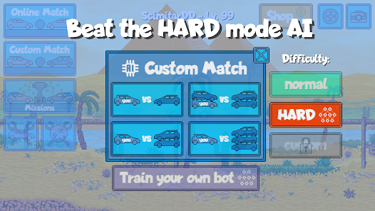 Challenge yourself to beat the super highly skilled hard mode AI in a fair 1v1 match or in an almost impossible 1v2 and even 1v3 match