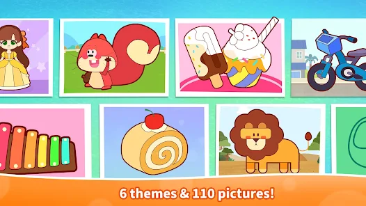 We've got plenty of painting materials for kids! There are six themes: food, animals, numbers, letters, etc., which give kids a chance to learn different knowledge while painting! There are a total of 110 coloring pages that kids can choose from freely!