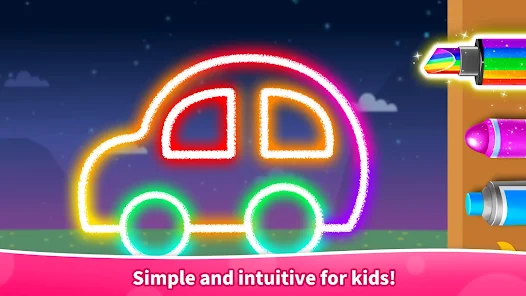 In doodle mode, kids are free to draw whatever they want without any rules! In coloring mode, they can use their favorite colors to fill in the designs and let their imagination go wild!