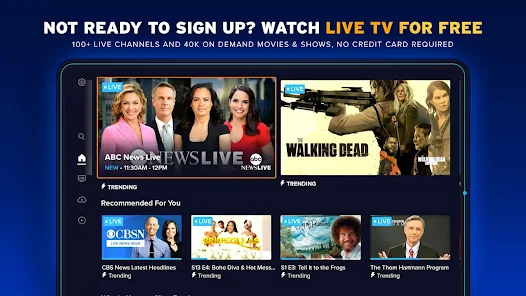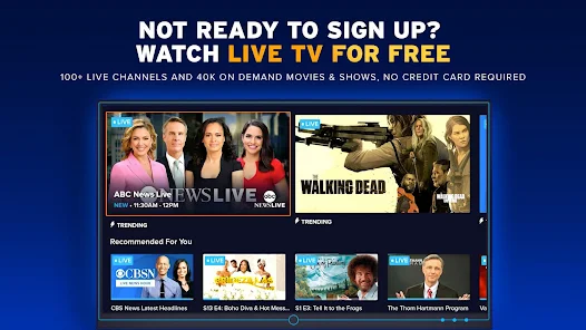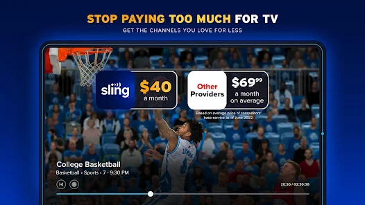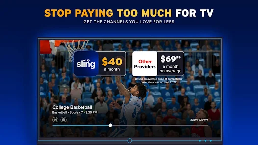 Stream live TV, sports, news, popular shows, movies & more with Sling TV. Customize your channel lineup and explore thousands of movies and shows On Demand. No hidden fees, no longterm contracts, and no more cable. Pause or customize your live TV streaming service at any time. Try Sling Freestream with hundreds of free Live TV channels, no credit card required.