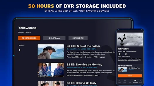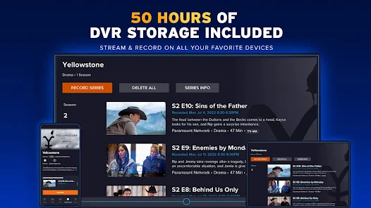 You’ll automatically receive 50 hours of DVR storage with your Sling subscription! If that’s not enough, you can upgrade to DVR Plus and record up to 200 hours of storage. Record your mustwatch sports, news and shows, then, watch them on your schedule.