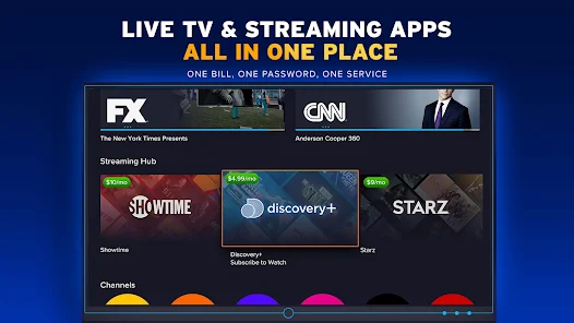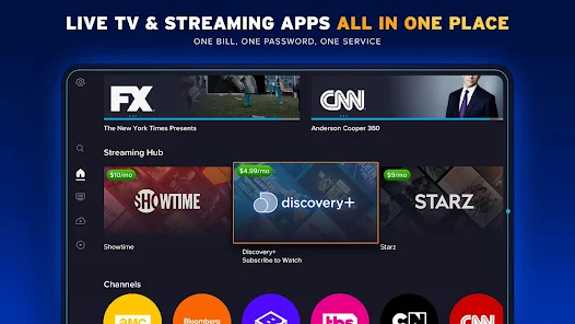 Stream today’s most popular shows and movies live and On Demand. Sign up and start watching channels like Bravo, Freeform, A&E, Investigation Discovery, TBS, TNT and so much more. Customize your channel lineup with premium streaming services like STARZ, AMC+, SHOWTIME, MGM+, Discovery+ and Hallmark Movies Now.