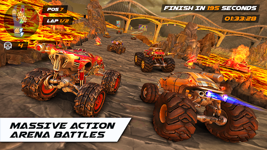 Your Monster Truck, your arena, your rules! Participate in Arena battles and get straight in to the real action. Burn out your enemies in the derby arena and race them into fire traps, huge morgensterns, chainsaws and other destructive obstacles. This race game is like a real action movie! Rocket Arena Car Extreme (R.A.C.E.) is a burning cocktail of survival races and battles on wheels.