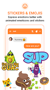 Express your emotions using trendy Emoji Send messages with awesome Stickers Enjoy animated emojis for better chatting