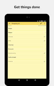 Serving as a simple word processing program, the text option allows for as many characters as you're willing to type. Once saved, you can edit, share, set a reminder, or check off or delete the note through your device's menu button. When checking off a text note, the app places a slash through the list's title, and this will be displayed on the main menu.