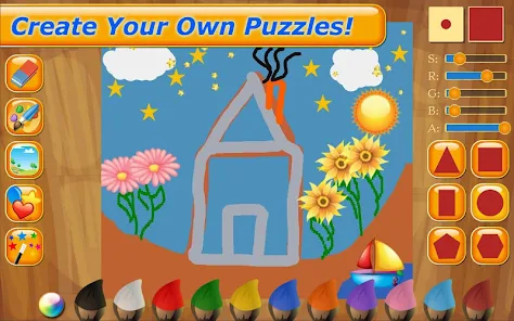 * 24 Predefined Puzzles, from 6 pieces for the first puzzle up to 16 pieces for the last ones. Each puzzle in the game is unique