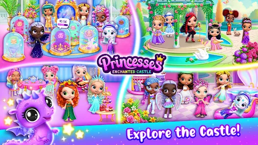 In this game, you'll explore the enchanted dream castle and princess house as you collect and care for your very own doll collection of magic princesses. Princesses Enchanted Castle is a fairytale fantasy life. Each princess doll has her own unique personality, dreams, and a magic look you'll get to create playing dress up! Collect every magic princess doll and add them to your castle. But collecting isn't enough you'll also need to care for and dress up your magic princesses, as well as look after the enchanted castle! As you build your collection of princesses, you'll unlock new areas of the magic dream castle to explore. With each new area come new adventures, challenges, and opportunities there's always something new to discover with princesses in their enchanted castle.