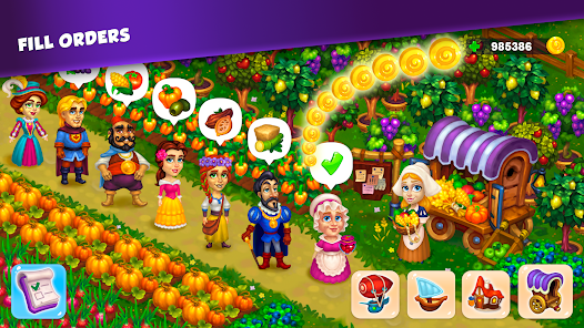 Interact with fairy tale characters completing their orders, develop your farm and build a magical city for them.