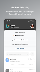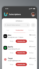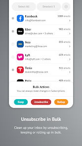 • Unsubscribe, keep, and rollup your subscription emails, either in bulk or individually.
