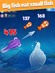 Simple and addictive gameplay: Move your fish and collect more companions to be stronger!