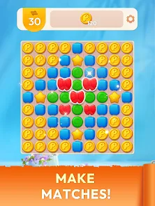 Test your wits and matching skills! Plan your moves by matching 3 or more in a row, and unlock more rooms by beating more match 3 levels!