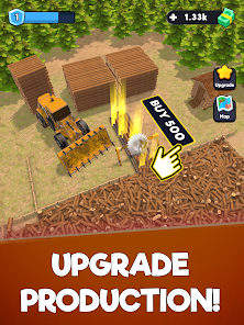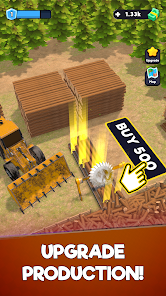 Begin your journey by chopping trees manually and gradually unlock powerful equipment to automate the process. Explore a variety of tree types, each with unique values and characteristics. Some trees grow faster, while others offer more valuable wood for your business. Watch your lumberjacks clear entire forests and stack up logs in your yard. It’s satisfying to see your inventory fill up!