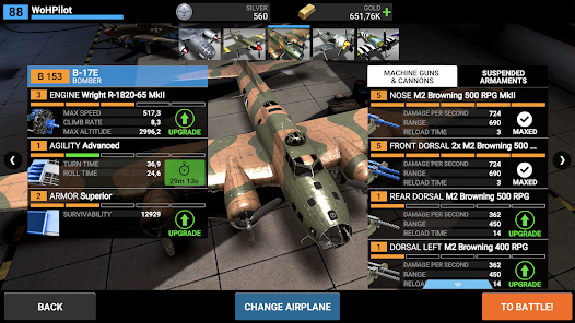Airplane games are all about customization and our WW2 flight simulator offers dozens of upgrades! Armor, engine, armaments, fuselage... The list is long and it’s up to you if you want to pilot and fly a slower but unstoppable bomber or a deadly raiding fighter. Remember though each airplane requires different air combat skills!