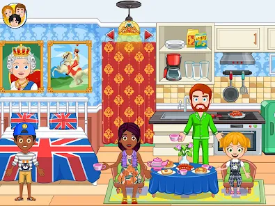 * Fun Locations We have created many exciting new locations for kids to play and explore: Feed pigeons in Trafalgar square, visit the Queen at her Buckingham Palace, sleep at the local bed & breakfast hotel. Is it tea time already? Visit the luxurious tea house and nearby Fish and Chips shop and of course, go shopping and dress up at the fashion store!