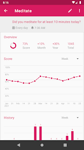 Loop helps you create and maintain good habits, allowing you to achieve your longterm goals. Detailed charts and statistics show you how your habits improved over time. The app is completely adfree, open source and it respects your privacy.