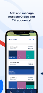Enroll all of your Globe and TM accounts to stay connected and keep track of your data usage and addons in one simple dashboard: Globe Prepaid and MyFi, TM, Globe Postpaid, Globe Platinum, GFiber Postpaid, GFiber Prepaid, Home Prepaid WiFi