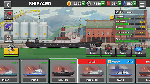 At your disposal is an impressive list of ships recreated according to real drawings. Complete routes of varying difficulty and earn money to replenish your fleet with new ships. Modify ships to cope with difficult routes and earn more money. Discover the entire fleet of vehicles: from an old tugboat to the most famous ships of the twentieth century!