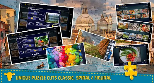 • Unique jigsaw puzzle styles and cuts, Classic, Figural and Spiral.