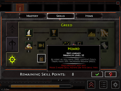 * Progression with experience providing passive upgrades for the traps as well as skill points